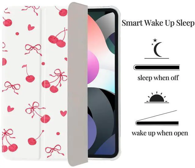 Girly Pink Cherry Heart Case for iPad 11 inch (A16 Chip) 2025 Generation 11th/iPad 10.9 inch 2022 10th Gen with Pencil Holder and Auto Sleep/Wake,White Leather Soft TPU Back Shell Stand Cover