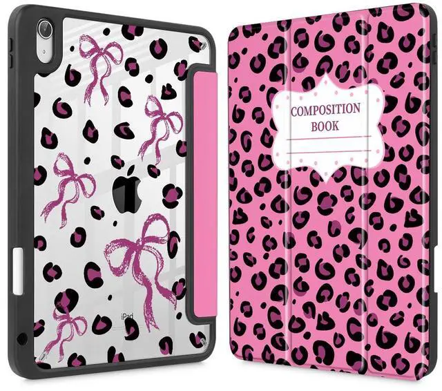 Mektron Case for 2025 iPad 11 inch (A16 Chip) 11th Gen Fit iPad 10th Gen 10.9 inch 2022, Buit in Pencil Holder with Shockproof Cover Clear Shell + Trifold Stand + Auto Wake/Sleep, Composition Book-Bows