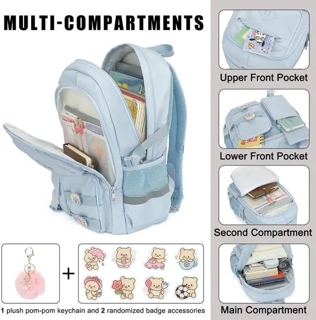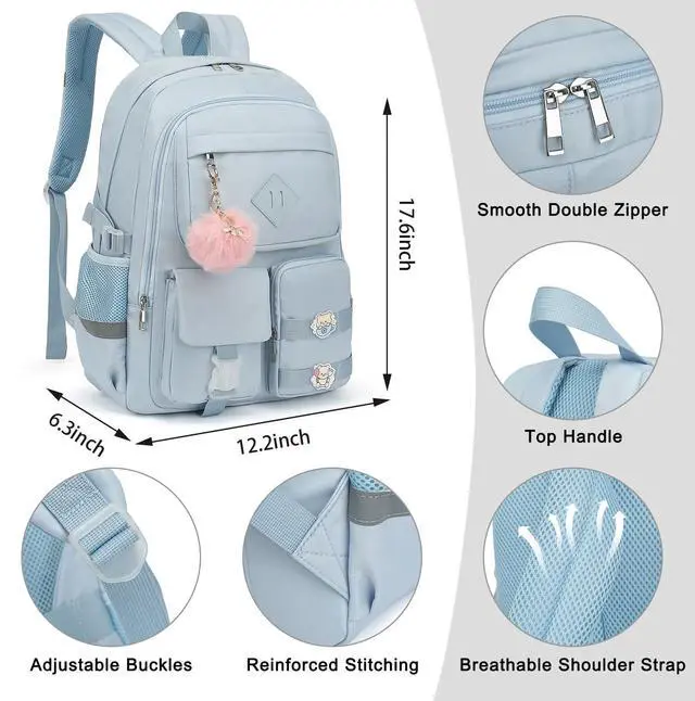 Material: Crafted from waterproof, ultra-lightweight, high density premium polyester fabric, this girls backpack with the exquisite workmanship of sturdy stitching and smooth zippers ensure to use with a long-term performance.