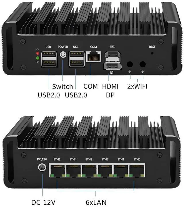 -6x i226-V 2.5G RJ45 LANs, 4xUSB 2.0, 1xCOM RJ45, 1xHDMI, 1xDP.