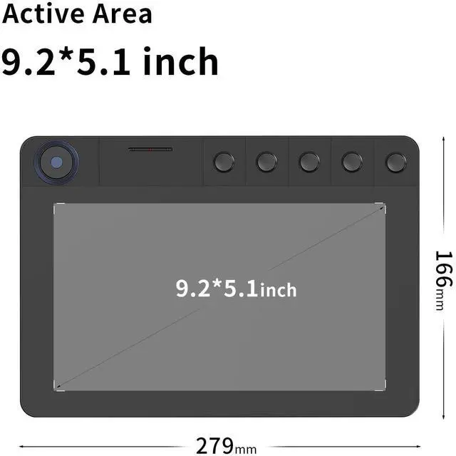 Drawing Area: The Havapen YZ960 drawing pad increased an extra ergonomic space alongside the 9 x 5 inch active area to improve hand and wrist posture, avoid joint and wrist problems and release your elbows and shoulder stress for long hours of use on the tablet
