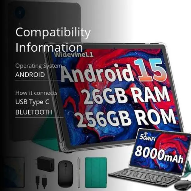 2025 Latest 26GB+256GB TabletThis Android tablet with keyboard is equipped with a 26GB (4GB + 22GB virtual memory) RAM + 256GB ROM combination, which can easily run various games, software and office documents. Multiple applications run more smoothly, and support 2TB micro SD card expansion memory, which can download various daily software and entertainment software.