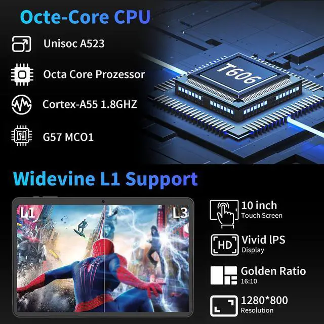 10.1-inch IPS display and 5G WIFIThis 2-in-1 Android tablet is equipped with a 10.1-inch large screen with a resolution of 1280*800, and the picture details are clear and delicate. The IPS screen allows you to see a clearer picture, which is suitable for long-term