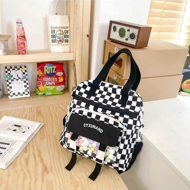 Kawaii Japanese Messenger Bag Cute School Bags Multifunction Laptop Backpack, Shoulder Bag Backpacks Travel Plaid Totes
