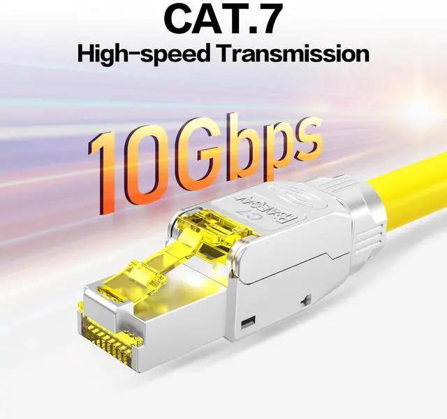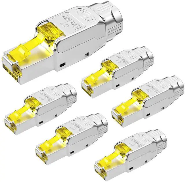 CAT7 Shielded Rj45 Connector Tool-Free 6 PcsEC Listed Field Termination Plug Gold Plated Modular Plug STP Connector Tool Less for Network Cable (CAT7)