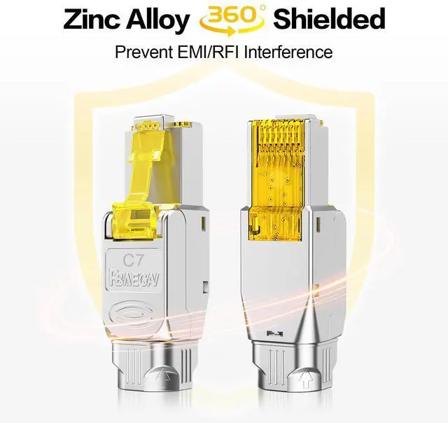 CAT7 Shielded Rj45 Connector Tool-Free 6 PcsEC Listed Field Termination Plug Gold Plated Modular Plug STP Connector Tool Less for Network Cable(CAT7)