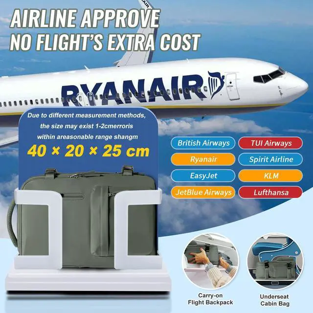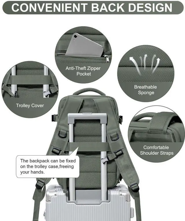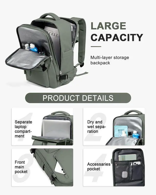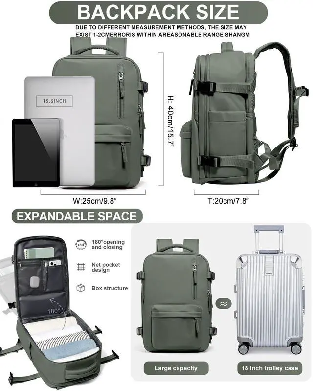 Travel Backpack Women, Carry On Backpack Flight Approved 18x14x8 inches Bag Spirit Airlines Personal ltem, College Sports Hiking Rucksack Waterproof Outdoor Casual Daypack Laptop Blackpack Men, Green