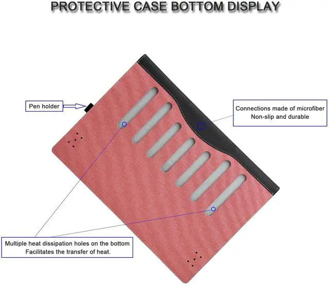 Design: Detachable design with magnetic connection in the center for easy installation and removal [no need to remove for normal use]. Backside cooling holes design, good heat dissipation, prevent laptop from overheating Designed with pen holder on the side for stylus storage. High-end business style, suitable for home, work, meeting, study, entertainment, traveling and other scenes.