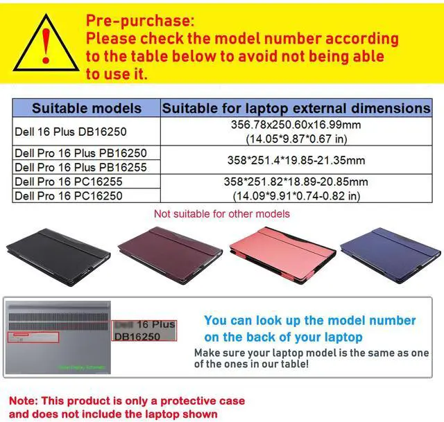 This case is only suitable for the following models: for Dell 16 Plus DB16250 for Dell Pro 16 Plus PB16250 for Dell Pro 16 Plus PB16255 for Dell Pro 16 PC16255 for Dell Pro 16 PC16250