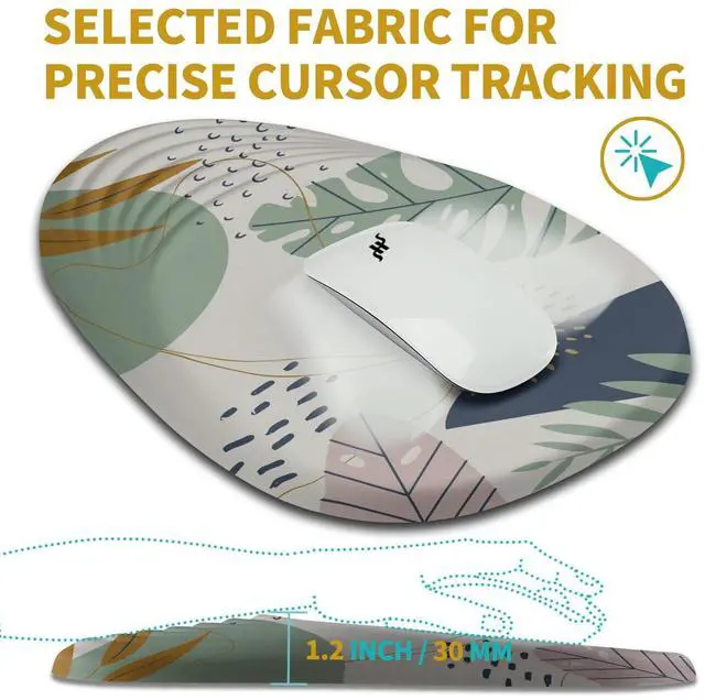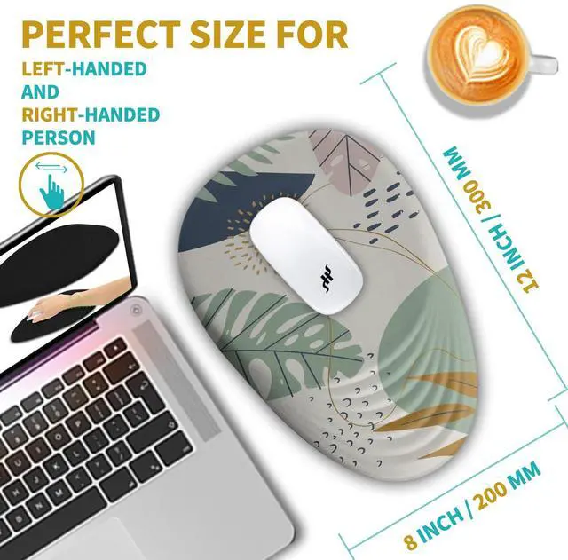 Hokafenle Ergonomic Mouse Pad Wrist Support with Stepped-Wedge Design, Wrist Rest Pain Relief Mousepad Filled with Memory Foam, Carpal Tunnel Mousepad for Wireless Mouse(12x8 inch, Abstract Leaves)
