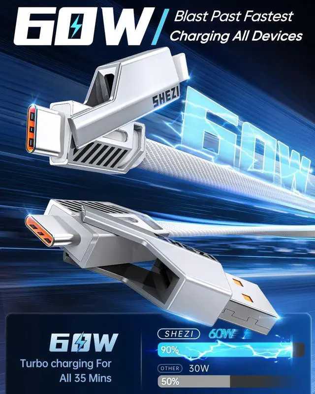 60W High-Speed Charging: Our multi-charging cable is equipped with 60W charging power, allowing you to get the power required for one day in 35 minutes. Note: To achieve 60w fast charging, please be equipped with a charging adapter of more than 60W