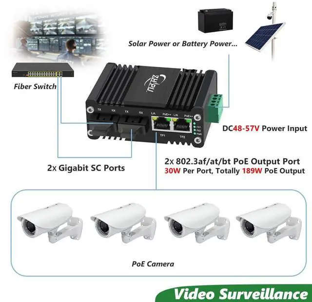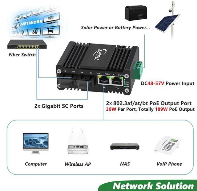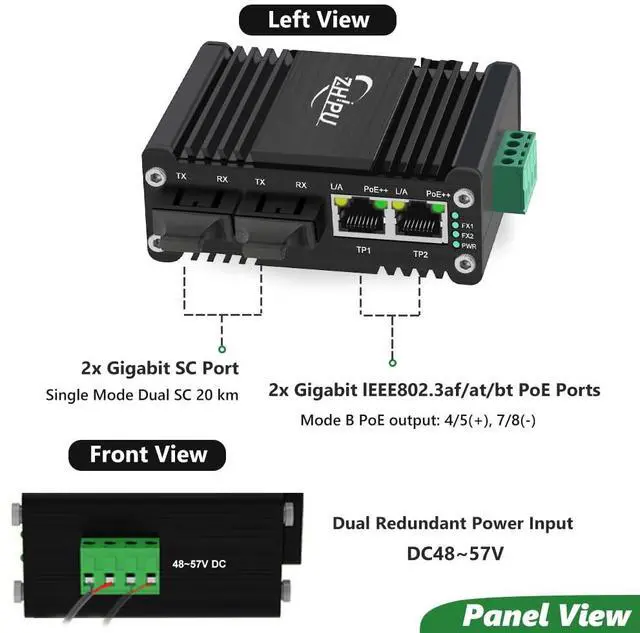 3. Supports IEEE 802.3 af/at PoE+ (30W) or IEEE 802.3 bt PoE++ (90W)