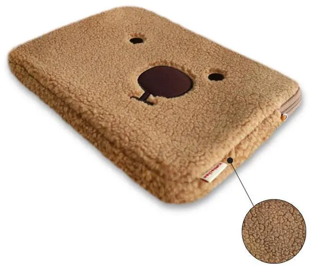 [Soft, Plush & Adorably Designed] Made with Kimhachans signature fluffy Pluffy fabric and accented with a charming embroidered bear character, this cozy sleeve adds warmth and personality to your daily carry