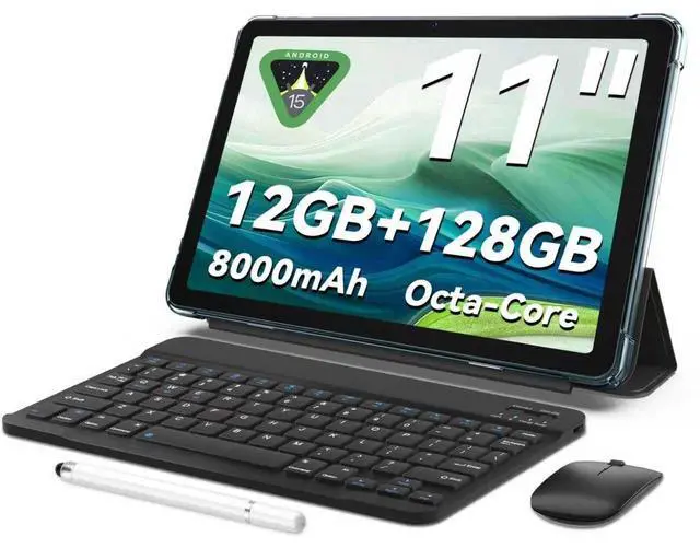 KELANYIS Tablet 11 inch Android 15 Tablets ^^ Octa-core ^^ 12GB RAM+128GB ROM ^^ 8000mAh Tablet with Keyboard ^^ Mouse ^^ Case ^^ Dual Band WiFi ^^ BT 5.0 ^^ GPS ^^ 13 MP Dual Camera (Blue)