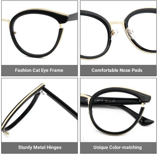 Zeelool Classic Cat Eye Blue Light Blocking Glasses for Women ZJGT414068-01 Black