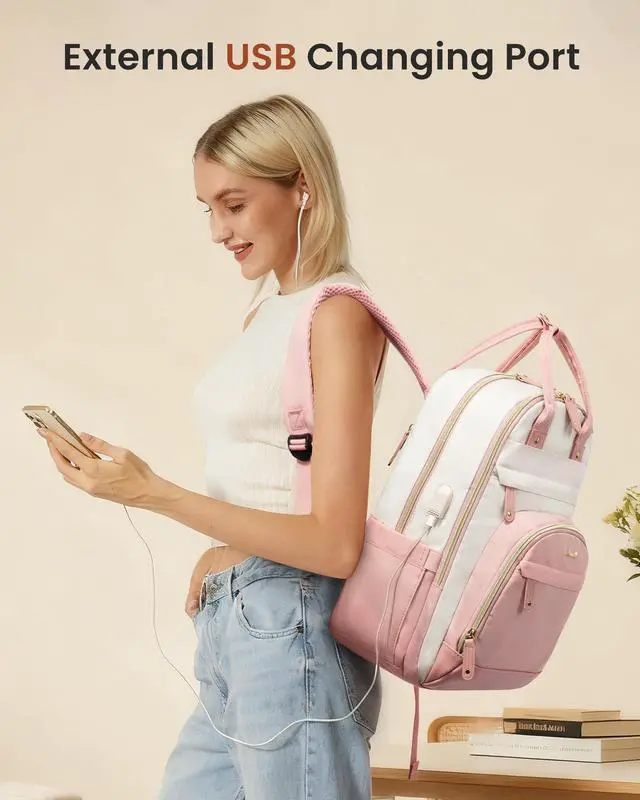 LOVEVOOK Backpack for Women,Laptop Backpack Women,Fits 17 Inch Laptop Bag,School Backpacks,Fashion Travel Work Anti-theft Bag,Waterproof Business Computer College Backpack Purse,Beige-Pink-Pink