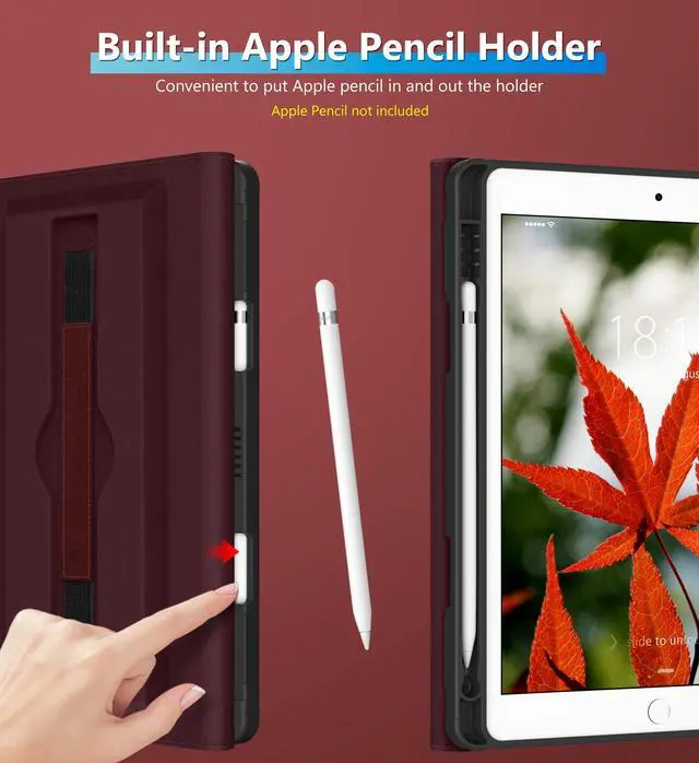 Built-in pencil holder, Pencil holder securely carries and protects Apple Pencil wherever you go. Please Note: Apple pencil not included