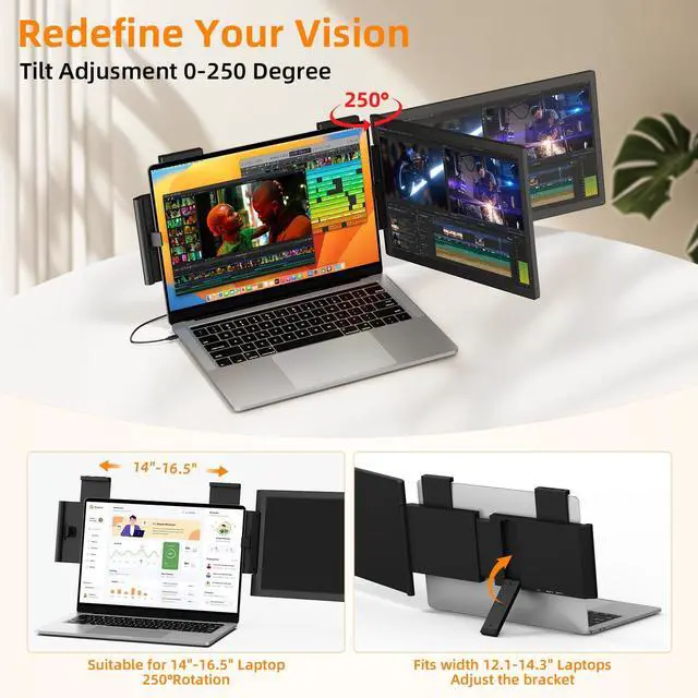 Save Time & Boost EfficiencyLaptop screen extender supports you to open multiple windows at the same time Engineered for multitaskers, code/Stream/Trade simultaneously with split-screen tech, Boost your efficiency by 200%! rotation (250°) adapts to desk/sofa/coffee shop setups. Ideal for mobile professionals, remote workers, movie enthusiasts, IT specialists, gamers, stock traders, programmers, and more!