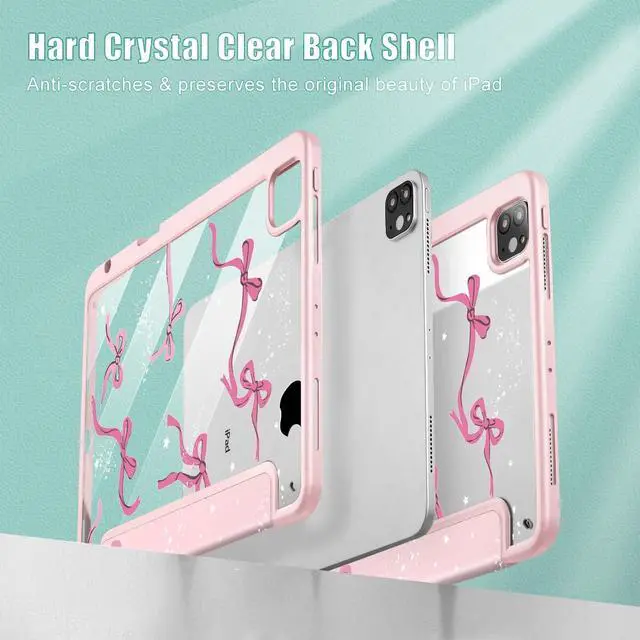 Tuiklol Case for iPad Pro 12.9 Inch M2 Case 2022 2021 2020 2018 Generation 6th/5th/4th/3rd, Built-in Pencil 2nd Holder Clear Transparent Protective Back Shell Cover, Bow-Pink