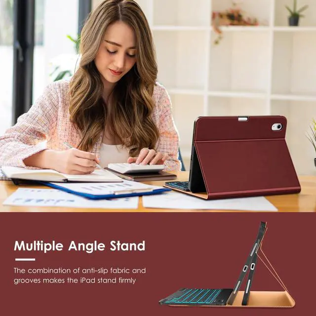 [LAPTOP-LIKE TYPING]The keys of the keyboard are scissor structure, square chocolate keycap ergonomic design.Large, well-spaced keyboard containing a full row of iPadOS shortcut keys lets you type comfortably with speed and accuracy.