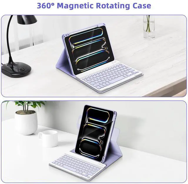 NOTE: Not compatible with any other devices. ^^ 360 Rotating BETTDOW 360 magnetic rotating case can be rotated between landscape and portrait to meet the needs of various scenarios. The exterior of the case is made of fingerprint-resistant, scratch-resistant premium leather. The interior is made of soft, non-slip fabric that keeps the keyboard and iPad secure. ^^ Detachable Keyboard & Long Battery Life BETTDOW 2024 11-inch iPad Pro wireless keyboard supports iOS and Android systems, with a detachable keyboard and case designed to fit different uses and environments. Built-in premium Li-ion battery with energy saving mode, 3 hours full charge, standby up to 30 days, work for at least 30 hours. ^^ Built-in Apple Pencil holderThe built-in pencil holder provides a slot for your stylus. You can slide your Apple Pencil into the holder so it won't get lost. The slot stays above the iPad for quick stylus removal when inspiration strikes, very convenient.