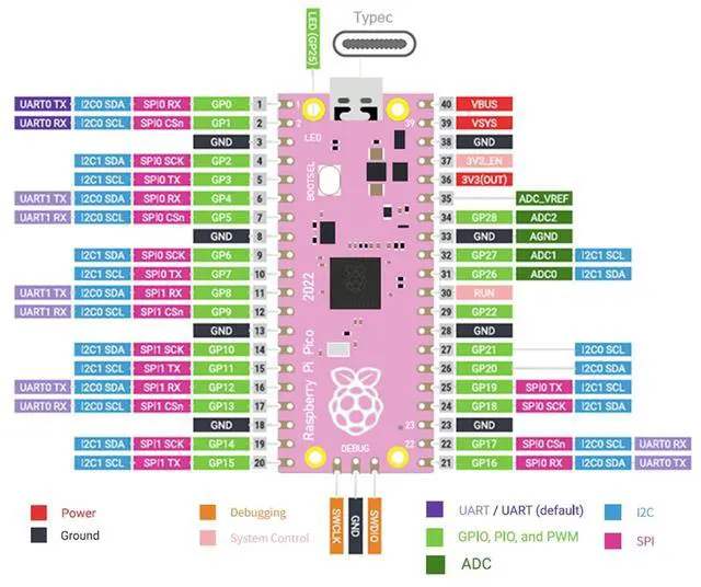 Designed by Raspberry Pi, RP2040 features a dual-core Arm Cortex-M0+ processor with 264kB internal RAM and support for up to 16MB of off-chip flash ^^ Network your Pico for a complete IoT solution ^^ Raspberry Pi Pico Pink Version comes with Type C Port and will convient for connection ^^ 26 x multi-function
