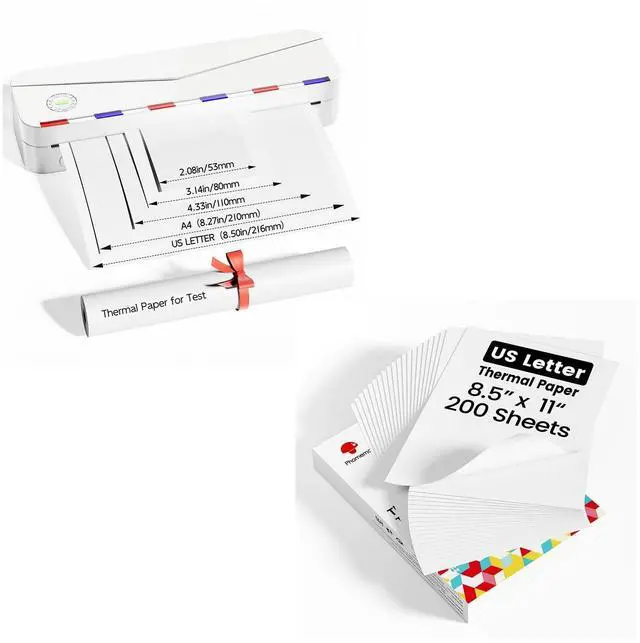 Phomemo M836 Portable Printers Wireless for Travel with 200pcs US Letter Thermal Paper