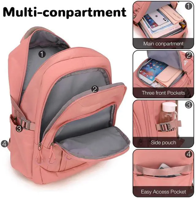 Large Space & Multi Pockets: 1 main compartment with a sleeve to hold 15.6 Inch Laptop, 1 vice compartment for daily necessities and magzines, 1 front compartment for other daily tools, 2 side pockets for bottle or other small items, 1 back anti-theft zipper pocket for cash, key or other valuables, makes your item organized and easier to find.