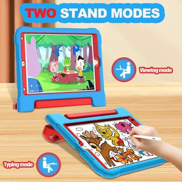 Two Viewing Angles: The 9th generation ipad kids case features a handle stand design with flip functionality, it provides dual viewing angles, allowing children to easily watch videos, play games, or drawing. Additionally, it ensures a secure grip, preventing accidental drops ^^