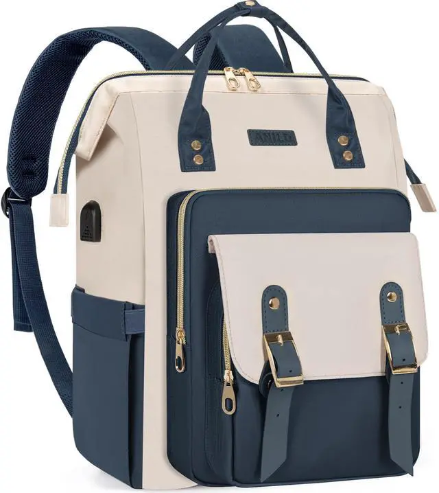 ANILD Travel Laptop Backpack for Women, 15.6 Inch Work Backpack with USB Charging and Port Luggage Strap, Airline Approved Business Work Bag for Nurse College Teacher