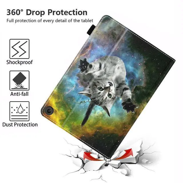 FVAENDHIO Case for Fire HD 10 & Fire HD 10 Plus Tablet (11th Generation, 2021 Release) - Premium PU Leather Cover with Auto Sleep Wake, Galaxy Flying Cat
