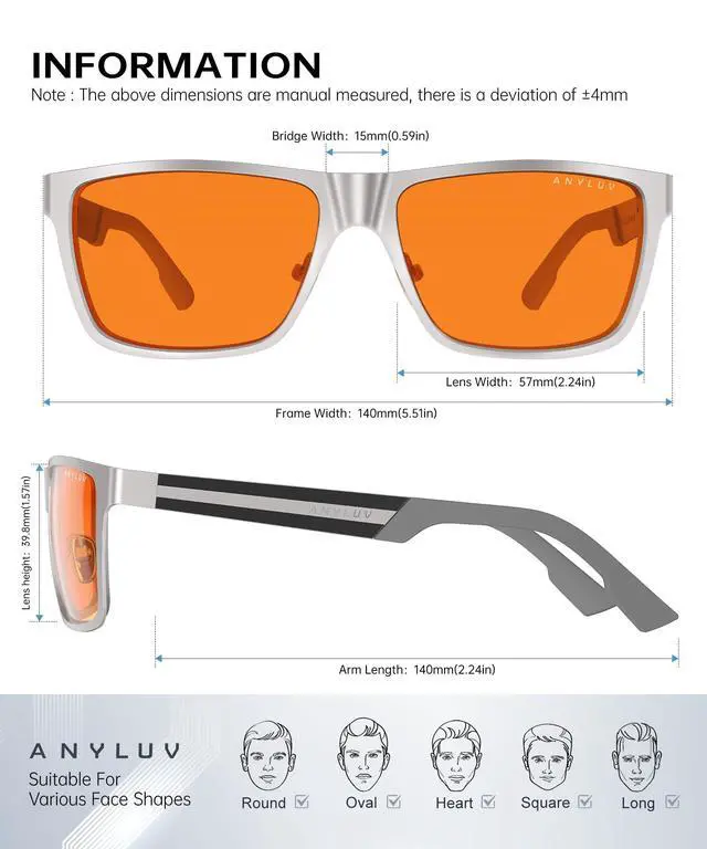 ^^ Stylish Blue Glasses: These computer glasses combine modern and classic design elements for any occasion. A low-key yet elegant design style can better highlight your temperament. The computer glasses feature square slim-fit frames and an ANYLUV logo decorative temple design, presenting a refined and fashionable style. Whether you are at work or in your daily life, men's anti-blue light glasses can add a touch of fashion to your appearance and showcase your unique charm ^^ Brand Customer Service & Gift Package: This type of blue ray glasses come with an exquisite triangular folding box, which will be a great gift for your family and friends! ANYLUV attaches great importance to product quality and customer satisfaction. Each ANYLUV customer can enjoy after-sale brand service for our blue screen glasses.