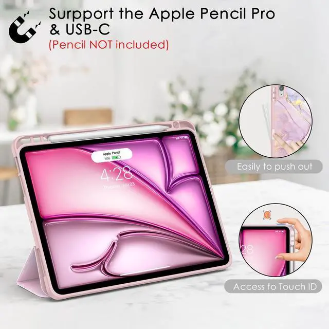 [Designed for iPad Air 11/ 10.9 inch M3 M2] - Exclusively designed for iPad Air 11 Inch M3/M2 2025-2024 (A3266 A3267 A3270; A2902 A2903 A2904), iPad Air 5th Generation 2022 (A2589 A2591 A2588), iPad Air 4th Generation 2020 (A2316 A2324 A2325 A2072) ^^ [Designed for your Apple Pencil] - Built-in pencil holder, conveniently place and remove your pencil, no longer worry about losing or breaking. Keeping your pencil for the iPad Air 11" M3 M2, iPad Air 5/4 gen safely all the time. (Pencil is Not included) ^^ [Designed for Full Protection] - This Case for iPad Air 11 inch/ iPad Air 5/4th Generation is made of durable PU leather exterior & soft microfiber lining & flexible TPU back shell provide full protection against fingerprints, shocks, bumps and scratches ^^ [Designed for Auto Sleep/Wake] - Inner magnetic strip, easy snap on and off, can ensure the auto sleep/wake function engages quickly every time.