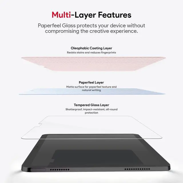 Hardness & Paperfeel: High-quality tempered glass material of the bottom layer can effectively resists scratches and alleviate high-impact drops, collisions and impacts from causing screen damage. At the same time, the paper screen protector ipad air 11 inch surface layer use high-quality paperfeel material imported from Japan to bring the same texture and use feeling as paper ^^