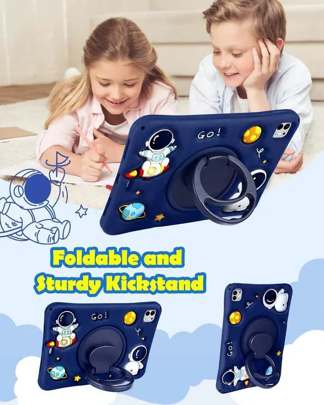 Please note: Not Compatible with any other device. You will receive with ipad pro 11 inch m4 case, a shoulder harness. ^^ Cute DesignThis for ipad pro 11 inch 2024 case has cartoon and cute 3D astronauts blue design which makes your table case looks distinctive. This is a choice for family. ^^ Rotating KickstandThe for ipad pro 2024 11 inch case has 360rotating and 180folding handle kickstand that is rugged and stands firmly. You can get rid of your hands while watching movies or playing games. ^^ Shoulder StrapIf you purchase this for Apple for ipad pro 11 inch case, you will receive a complimentary cute shoulder strap, which is detachable and adjustable, making it easy for you to carry for ipad pro 11 inch case 2024 m4 when you go out. ^^ Material QualityThis case for ipad pro m4 case 11 inch is made of durable soft Silicone, which has a good touch and can also protect your flat shell from falling, shock, and dust.