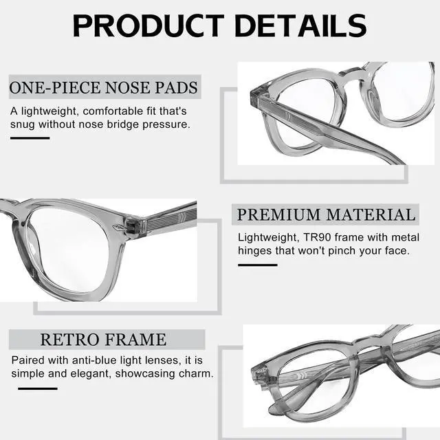 Blue Light Blocking Glasses - By physically reflecting high-energy blue-violet light in the 415455nm spectrum, it blocks harmful blue light to ensure visual clarity and color accuracy while alleviating digital eye strain caused by prolonged device use. Enable Eye Protection Modethis softens and warms the screen's light output to reduce eye irritation. ^^ Square Large TR90 Frame Design - SIPHEW's blue light blocking glasses combine robust TR90 material distribution with durable metal hinges, significantly reducing the risk of breakage during sports or daily use. Their stable construction ensures both comfortable wear and stylish appeal.