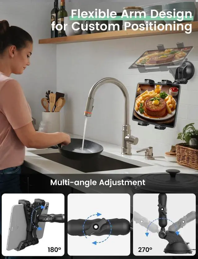 Strong Suction Cup with Sticky PadThis tablet holder for car features a durable suction cup with an additional sticky pad to enhance grip, making it perfect for dashboard or windshield mounting. Its washable and reusable suction cup ensures long-lasting hold, ideal for any weather or road conditions. Its a reliable car accessory that stays secure, even on bumpy roads. Makes a perfect holiday gift for the traveler or tech enthusiast in your life. ^^ Fits 711" Tablets Not for PhonesThis heavy-duty tablet mount is compatible with iPad Pro, iPad Mini, iPad Air, and other 7-11 inch tablets.