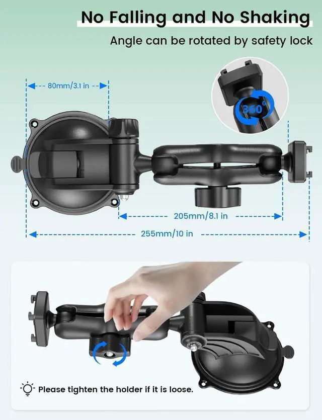 ^^ Easy Setup & Reusable DesignNo tools required! Install your iPad holder for car with ease. Simply rinse the suction cup to restore its grip for repeated use. Perfect for drivers who need to mount their device on the dashboard, windshield, or any smooth surface. This tablet holder is designed to handle the rigors of long trips and rough roads. ^^ For All Vehicles and Driving NeedsThis mount is perfect for any car, truck, SUV, or van, allowing you to use your tablet for GPS navigation, CarPlay setups, or entertainment during long drives.