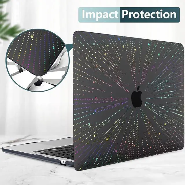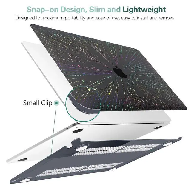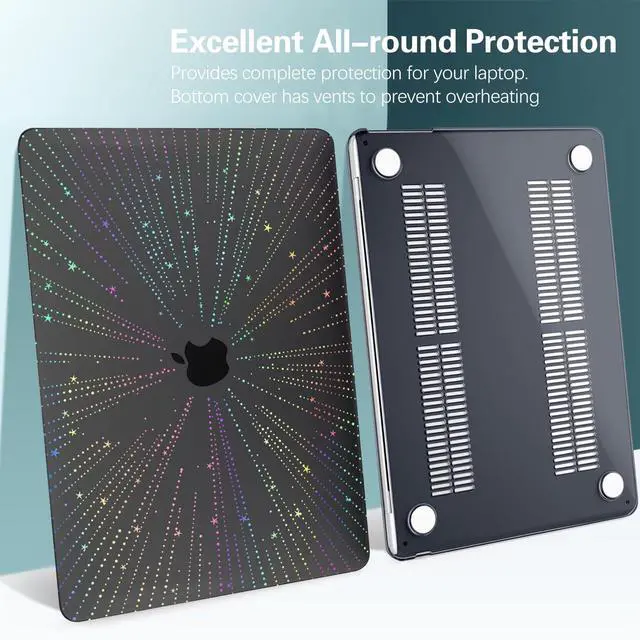 KEROM Clear Black Case with Patterned Design, tailor-made for your MacBook Air 13 inch from 2018 to 2020 (Models: M1 A2337/A2179/A1932). Designed with an ultra-thin plastic hard shell case with a silicone keyboard protector, it provides complete protection for your valuable laptop. Designed with the unique ultra-crystal feature, this case allows you to showcase the original sleek and modern aesthetic of your MacBook Air while keeping it safe. Whether you're working or playing, the KEROM Case is the perfect companion for your MacBook Air 13.3 ''. In addition to its stylish appearance, this case is highly durable and scratch-resistant. Made from high-quality plastic, it is precision-engineered to resist bumps, scratches, and fingerprint smudges encountered during daily use, ensuring your MacBook Air stays looking as good as new. The KEROM team pays great attention to detail, ensuring every corner and opening is meticulously designed for a perfect fit. This design does not interfere with the daily use of the ports or the opening and closing of the device. Whether you prioritize simplicity or practicality, this KEROM MacBook Air 13 inch cover case will meet your needs. It protects your MacBook Air from accidental damage while allowing your personality and taste to shine through.