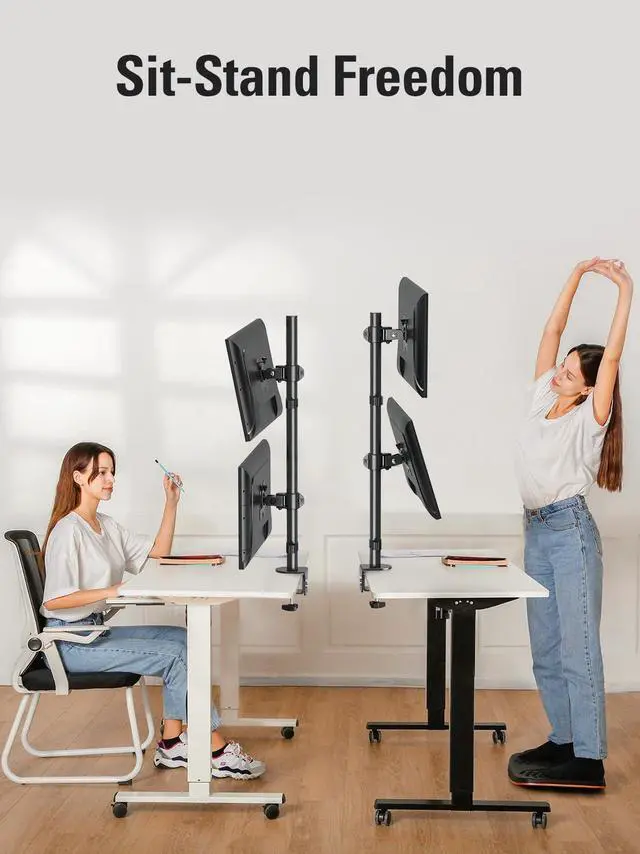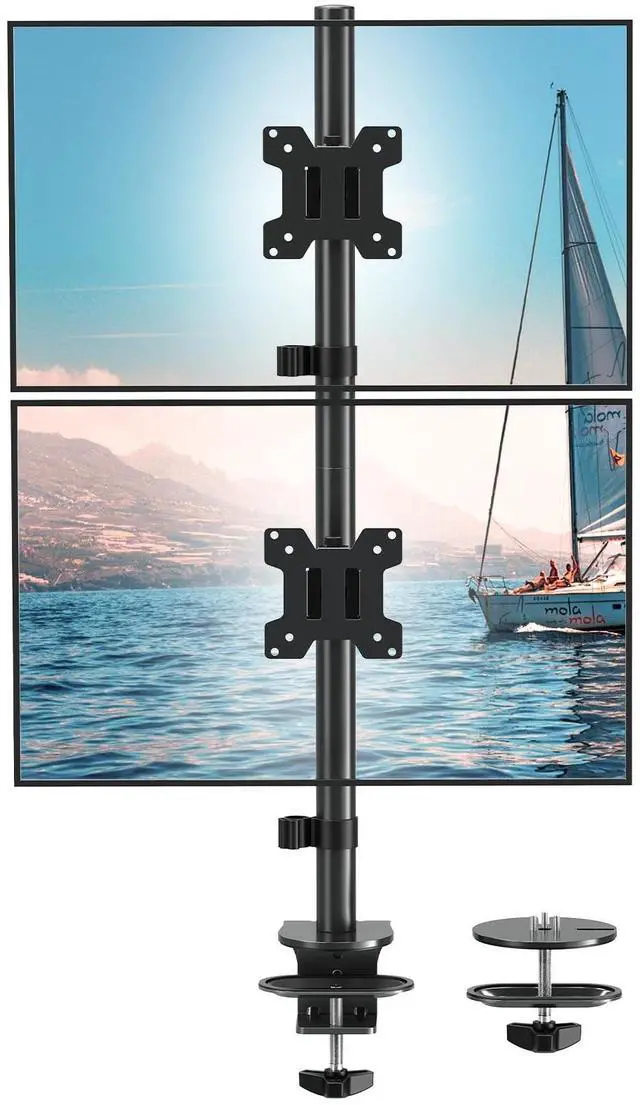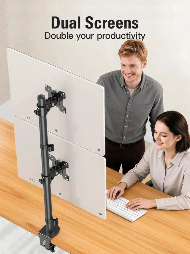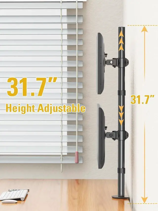 ^^ Space-Saving Stacked Design: Optimize your workflow with this vertical dual monitor mount. Stack one screen above the other to efficiently view multiple applicationsideal for coding, data analysis, and creative work in home offices or professional setups.
