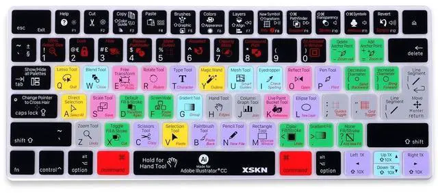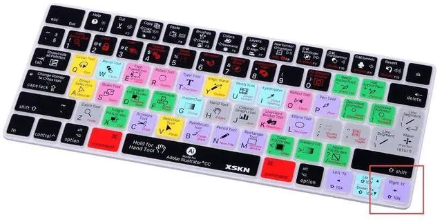 XSKN Illustrator Shortcuts Magic Keyboard Silicone Keyboard Cover SkinProduct Introduction: - Silicone material keyboard cover skin- Upper side adopted rubber coating, gives you a comfortable soft touch feeling and protect the keyboard cover from losing color- Lower side is shiny surface, make the keyboard cover fit perfectly on your keyboard without any sticker/glue- The keyboard cover itself is transparent, printed background and characters in solid colors, the back light will not shine through itProduct