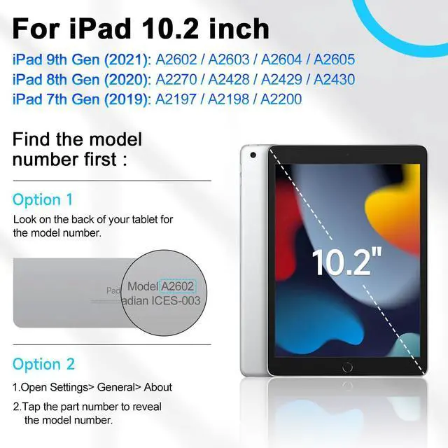 Fits 2021 iPad 10.2 inch 9th Generation model A2602 A2603 A2604 A2605, 2020 iPad 10.2 inch 8th Generation model A2197 A2198 A2200, 2019 Release iPad 10.2 inch 7th Generation A2270 A2428 A2429 A2430 ^^ [Unique Kickstand Function] only one type of 10.2 inch iPad protective case supports auto kickstand retraction in the market, you only need to lift the kickstand up gently and then free your hand, done to open/close the kickstand, that allows you and your kids use it much convenience ^^ [3-layer Super Thick Full Body Protection] Upgrade super thick super soft rubber + rugged PC and front screen protector frame combination.