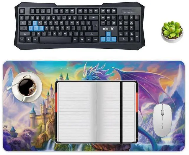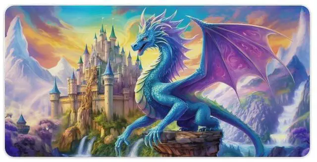 [HD PRINTING] These well-designed dragon mouse pads are printed using advanced HD printing technology, ensuring that they are fade-resistant and wrinkle-free. This provides you with a vibrant, high-quality extended mouse pad that leaves a lasting impression. ^^ [STITCHED EDGES] The castle dragon desk mat features a locked edge design to prevent the edges from curling. This not only extends the life of the pad, but also ensures that the desktop surface is stable and flat, maintaining a professional workspace. ^^ [NON-SLIP RUBBER BASE] The blue dragon desk pad is made of thick textured rubber, is durable and can firmly grip the desktop, effectively preventing sliding and unwanted movement.