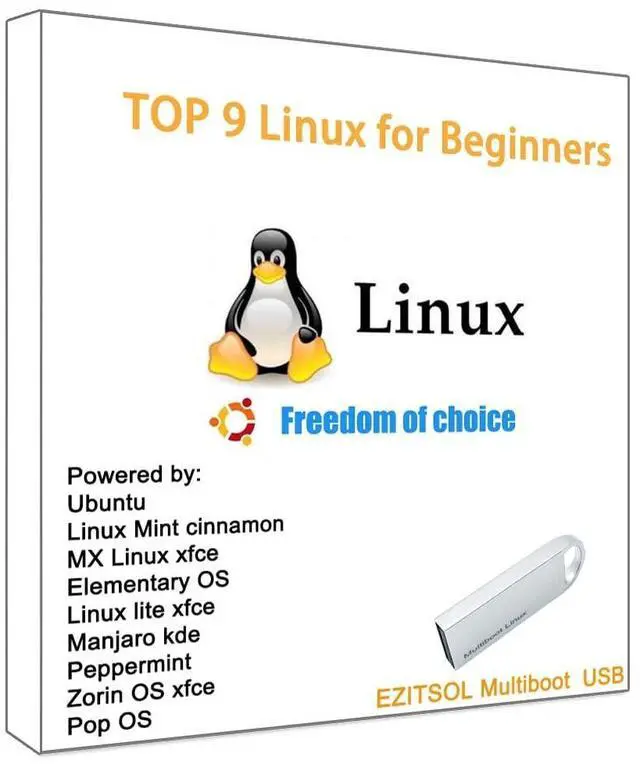9-in-1 Linux: 32GB Bootable Linux USB Flash Drive for Ubuntu 24.04 LTS, Linux Mint cinnamon 22, MX Linux xfce 23, Elementary OS 8.0, Linux Lite xfce 7.0, Manjaro kde 24, Peppermint Debian 32bit, Pop OS 22, Zorin OS core xfce