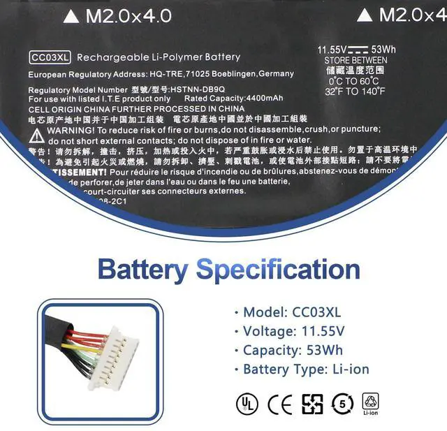 Condition: Brand new, from high quality materials, top circuit boards and smart chip. ^^ Replace Part NumberCC03XL L78555-005 HSTNN-DB9Q L77608-2C1 HSTNN-IB9F L77608-1C1 HSTNN-LB8Q L77608-421. ^^ Compatible Laptop ModelsBattery replacement for HP EliteBook 830 G7/ 835 G7/ 840 G7/ 845 G7, HP EliteBook 830 G8/ 835 G8/ 840 G8/ 845 G8, HP ZBook Firefly 14 G7/ ZBook Firefly 14 G8, HP Probook 635 Aero G7 /ZBook Firefly 14 G8. ^^ ANTIEE PromiseEveryone of our replacement batteries has tested with strict quality control standards to ensure the true capacity, stable current and low self-discharge. All ANTIEE batteries are UL / CE / FCC / RoHS Certified for safety, we are confident in the performance of the replacement battery. ^^ ANTIEE After-salesWe support 12 months of warranty, 24 x 7 email support. As you begin to use the product, any questions you can contact with us via "Your Orders" tab in your account, we will respond within 24 hours.