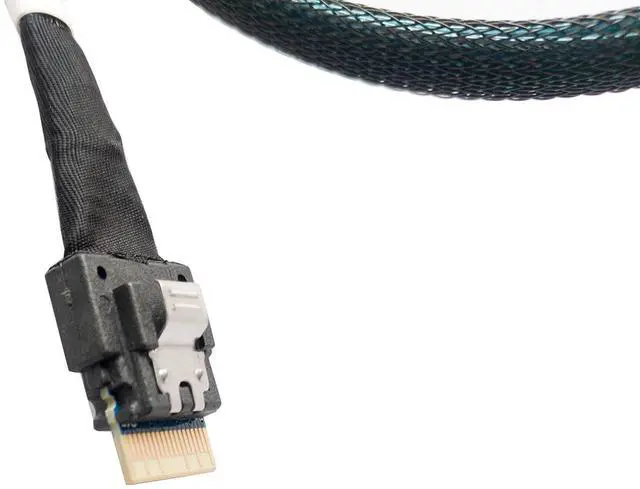 *Slim Line SAS 4.0 SFF-8654 4i 38pin to HD Mini SAS 4i SFF-8643 36pin Cable. *Smaller size connector and cable saves device space. Provide four channels signal transmission as per industry standard.