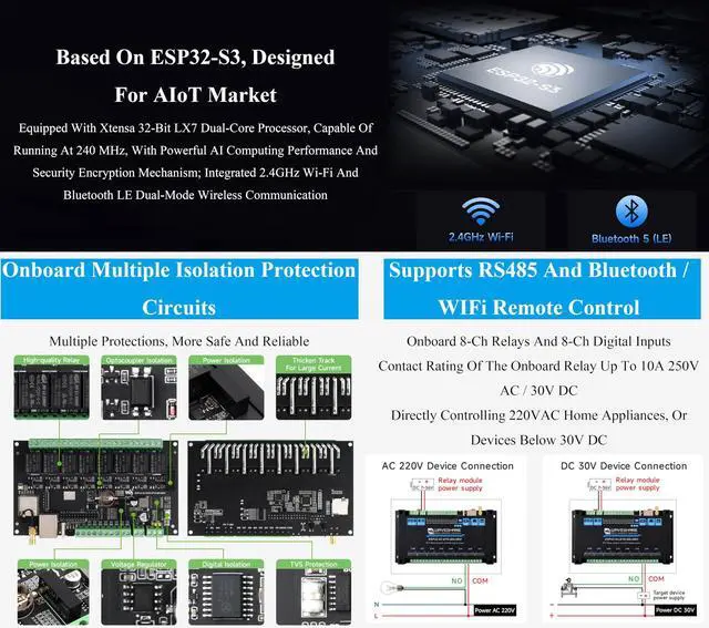 ^^ Protection and Isolation: Onboard optocoupler isolation to prevent interference from external high-voltage circuit connected to the relay. Onboard digital isolation to prevent interference from external signal. Onboard unibody power supply isolation, providing stable isolated voltage, no extra power supply required for the isolated terminal.