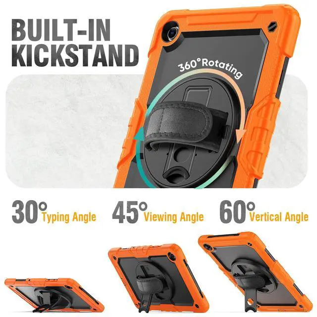 Model number: SM-X230 / SM-X235 / SM-X236. "Settings" - "About" - "Model Number" to check, the Pen is NOT included! and you can find installation video on this page. ^^ Shockproof & Screen Protector Designed with durable anti shock material (with 2 front covers, one with built-in screen protector and one without, you can use your own protector if you want). Always keep it safe from shock, drop, scratch or accidental damages in daily use, also ideal for kids, school students, business, work outdoors, use for restaurant order, travel around, etc. ^^ 360 Rotating Hand Strap & Stand Adjustable swivel hand strap and stand, you can hold the tab A11 Plus 11 inch by one hand. The built-in stand provides a stable supports, with viewing/drawing/typing angles, and it can be folded up when not in use. ^^ Multifunctional Carrying Strap The shoulder strap of Samsung A11 Plus tablet case is detachable and adjustable, both kids and adults can carry the tablet around during hiking, traveling or other activities outside. Especially ideal for traveling! Because you can hanging it on the back of the seat during car rides like a TV.
