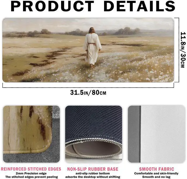 Extra-Large Size ( 31.5 " x 11.8" x 0.08" ): This long desk mat can fits your mouse, keyboard, and even a notebook! No more sliding or crowdingjust smooth moves for work or gaming ^^ Non-Slip Rubber Base & Smooth Surface: Stays firmly in place during intense sessions! The slick top lets your mouse glide like butter, while the rubber grip prevents annoying slips ^^