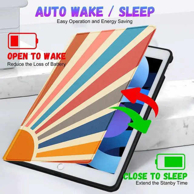 ^^ Auto Sleep/Wake: Built-in magnetic strip, this for iPad 5, for iPad 6, for iPad Air 1, for iPad Air 2, for iPad Pro 9.17 with the smart funtion of auto sleep/wake, no wasting the power energy and extend your iPad standby time.